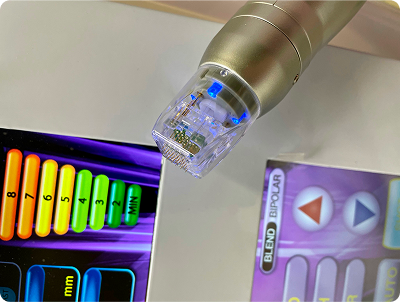 Позолоченные иглы пропускают радиочастотные импульсы на четко программируемую глубину воздействия, на этой глубине RF-энергия становиться тепловой энергией, запуская важные процессы клеточного обновления кожи.